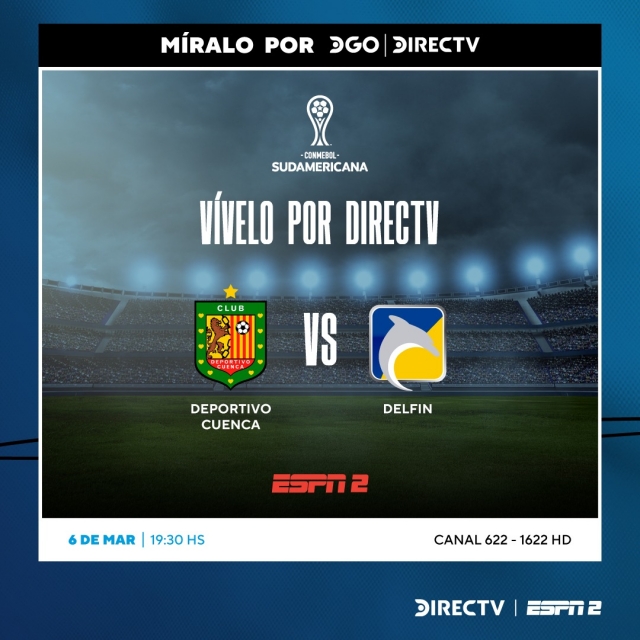 Dado el sorteo que realizó la Confederación Sudamericana de Fútbol (Conmebol), el primero de los dos duelos entre ecuatorianos por la fase previa a la etapa de grupos de la Copa Sudamericana 2024, será el Deportivo Cuenca vs Delfín que se transmitirá hoy desde las 19h30 (hora ecuatoriana), en los canales 622 y 1622 (HD) de la parrilla de DIRECTV y también por la plataforma ‘StarPlus’.